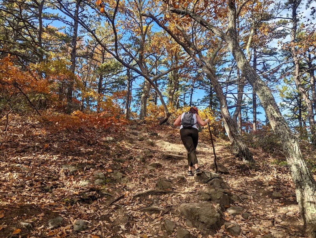 The greater portion of the trail consists of rocky switchbacks as you gain over 1,900 feet of elevation. Unfortunately, I made the mistake of forgetting trekking poles for this hike. However, I soon realized they are helpful and ended up finding a stick to use.