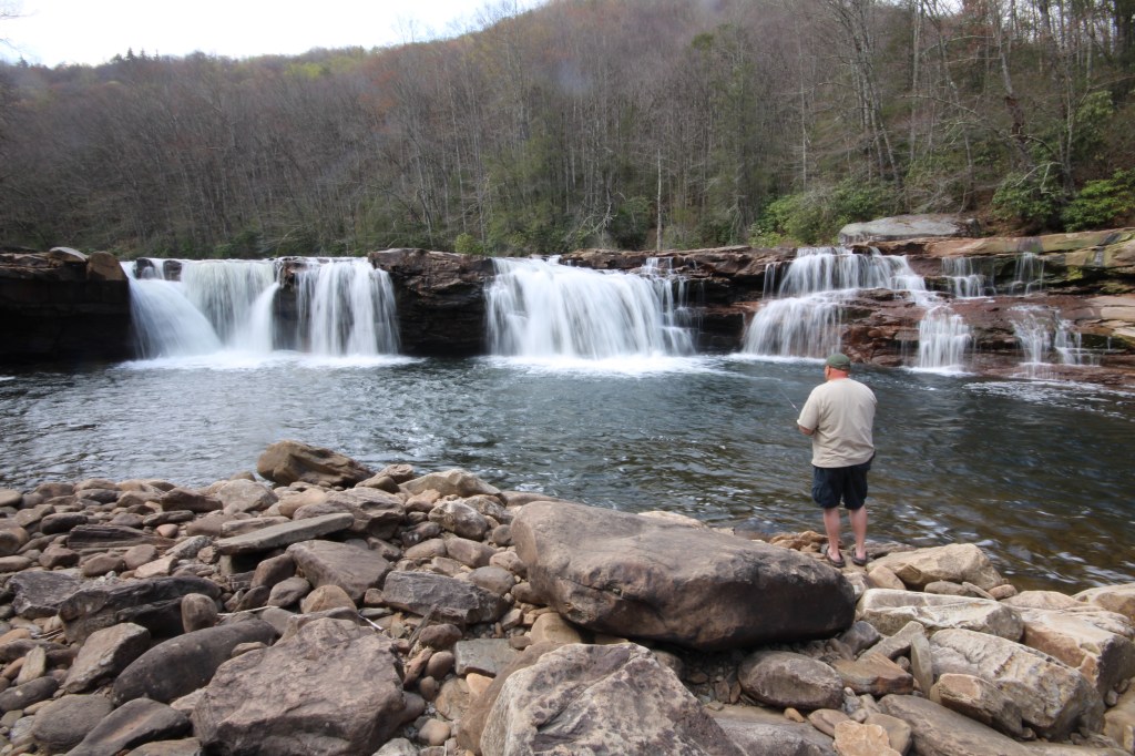 The high falls span the width of the river and offer a sweet swimming spot. This area is also stocked seasonally with trout which makes for wonderful fishing if you watch the stocking schedule. Regardless, there are natural trout and other species in the river to fish for with a valid West Virginia fishing permit.
