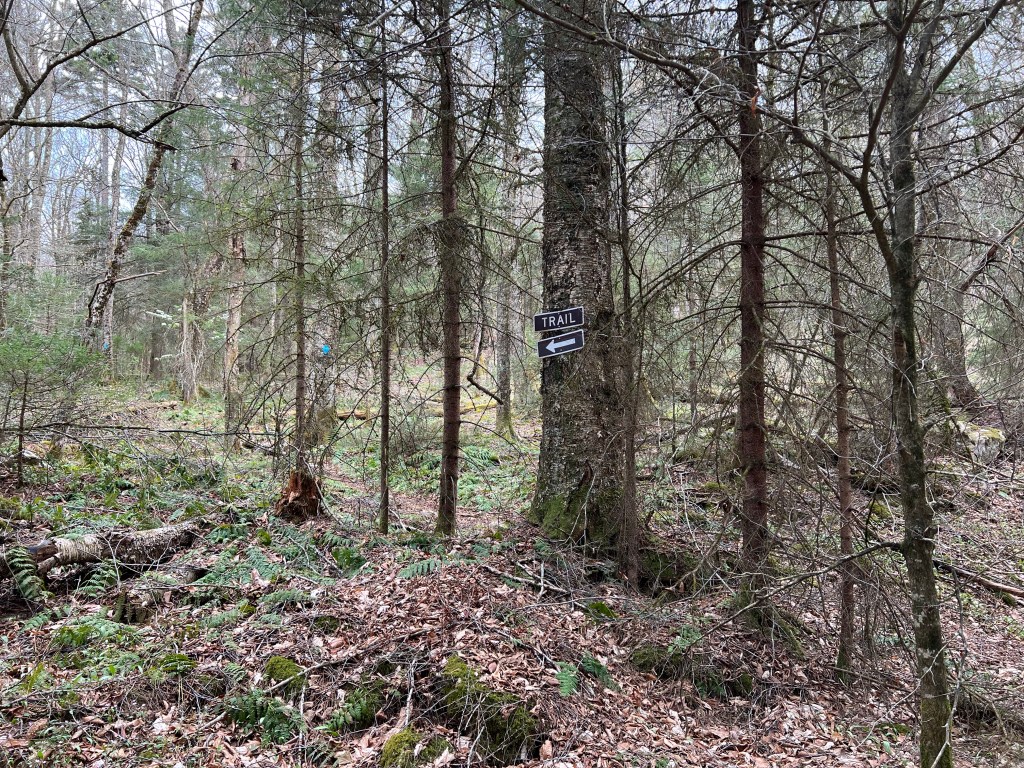 The trail starts off slightly graveled before turning to dirt. After the first bridged stream crossing, you will enter a field where wildlife reclamation is taking place. Continue past the gravel road and up the path leading into the tree line. From there, you will follow switchbacks to the top of the mountain where the Allegheny Trail splits from the High Falls trail. The trails in this area are marked with blaze and have good signage near intersections. As always, having a digital and paper map are helpful when hiking.