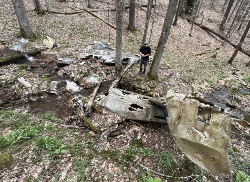 An alternate method for hiking to the crash site is hiking down Beulah Trail (Trail 310) from County Road 22/2 and make a right at the intersection with Laurel River Trail (Trail 306). Continue about 0.3 miles until you reach the next ravine. At this point, follow the creek up the ravine until you reach the crash site.