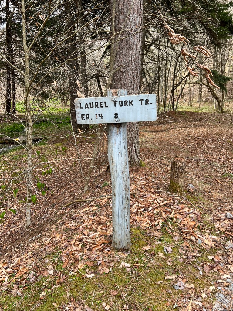 First, drive to Laurel Fork Campground and park at Laurel River Trail Head. There is room for about 3 vehicles beside the outhouse. If you are camping at the campground, it is $8 per night in a single camper lot.