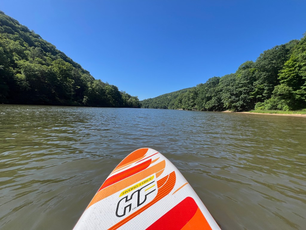 1.6 miles later, as my shoulders began to feel the weight of my 24 lb. load in my Aldis backpack, I reached the river after about 1 hour. For the first time in nearly 5 years of recreating in Snake Hill WMA, I actually ran into a snake near the water’s edge. Luckily it was a friendly water snake and we parted ways without too much commotion. Then, I inflated my paddleboard and hit the water.