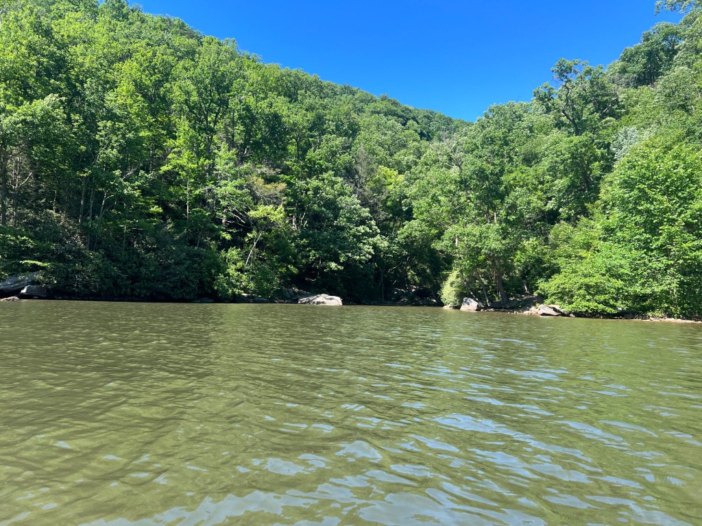 I enjoyed the afternoon paddling down the river into the lake. Aside from the occasional frat boy party boat, the waters in this section are quite calm, requiring the need for almost continuous paddling. I found a waterfall coming off of Buzzard Run which was unexpected and unique. One thing about me is that I will find a waterfall wherever I go.